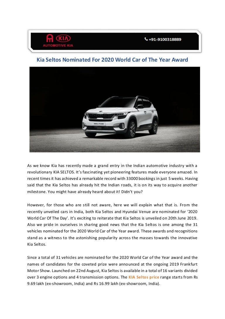 Kia Seltos Nominated For 2020 World Car Of The Year Award